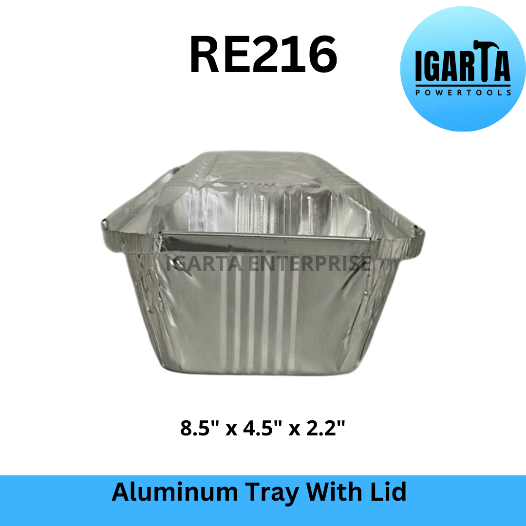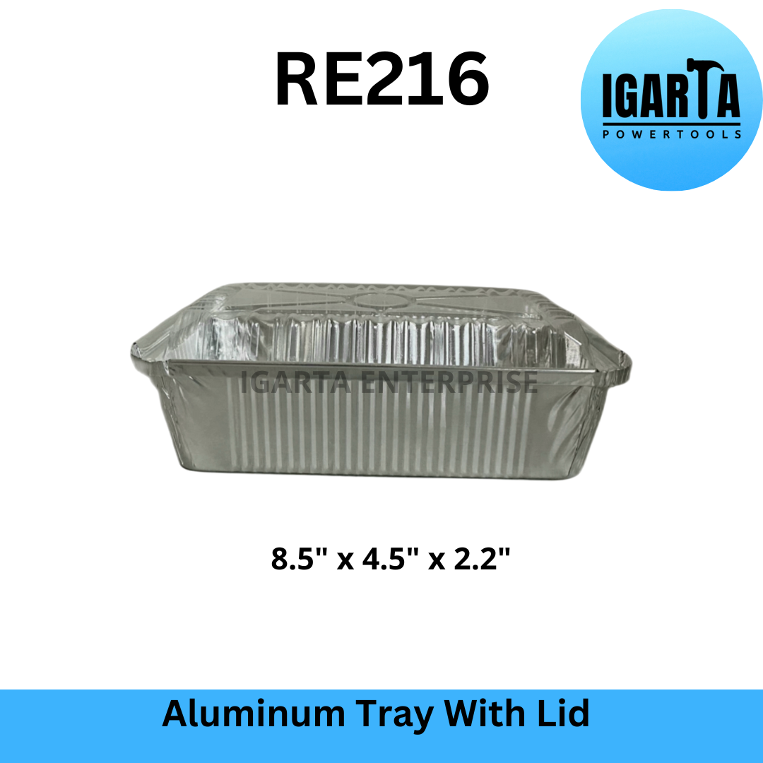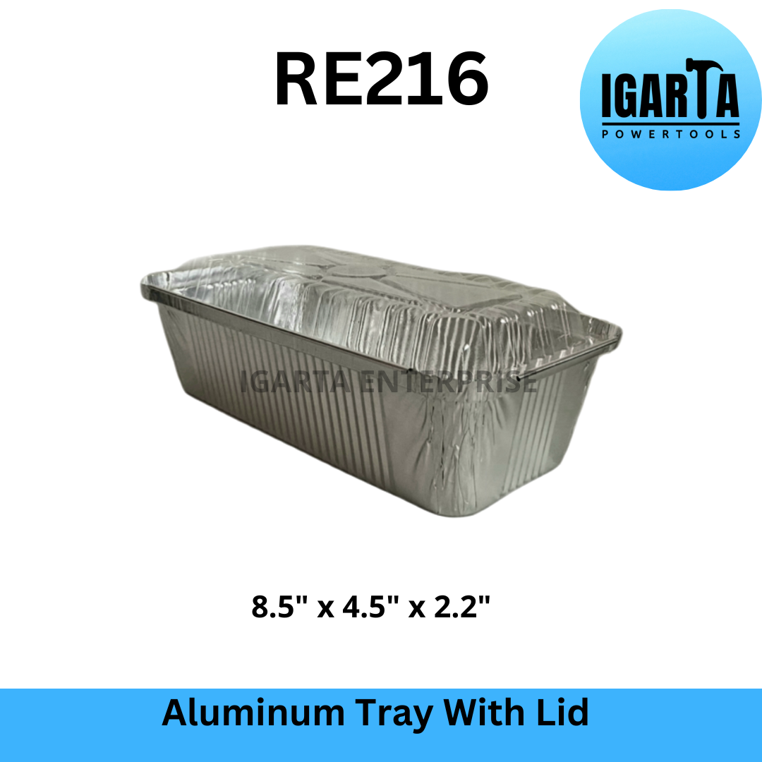 RE216 Aluminum Loaf Pan with Lid - 8.5x4.5x2 Inches is a food grade and oven-safe aluminum pan that can be used for baking, serving, and storing bread, cake, meatloaf, and more. It has a capacity of 900ml and comes with a clear plastic lid that seals in freshness and prevents spills. This pan is ideal for catering, takeout, or home use. It can hold hot or cold dishes and is easy to clean and recycle.