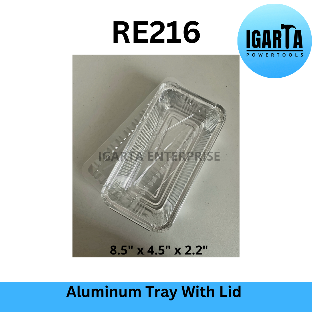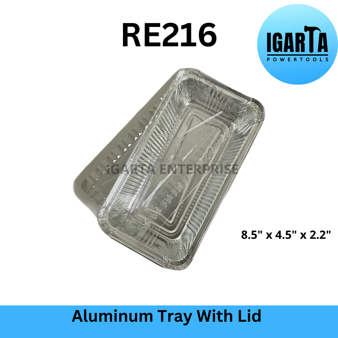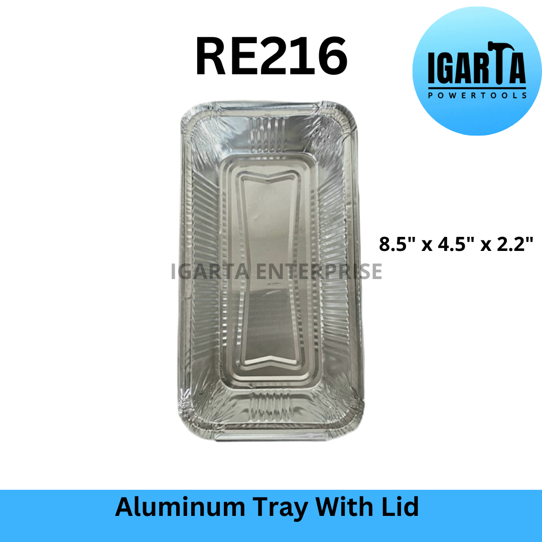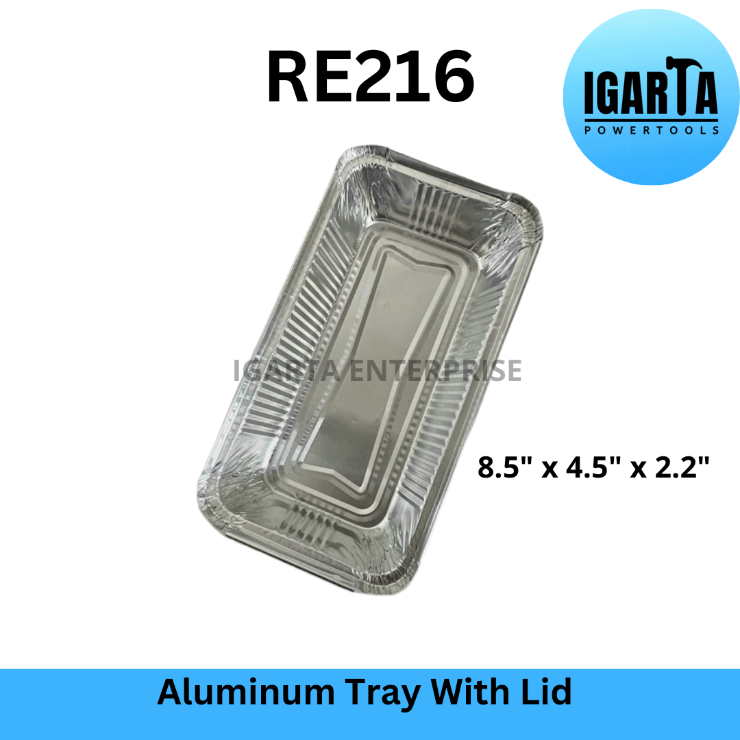 RE216 Aluminum Loaf Pan with Lid - 8.5x4.5x2 Inches is a food grade and oven-safe aluminum pan that can be used for baking, serving, and storing bread, cake, meatloaf, and more. It has a capacity of 900ml and comes with a clear plastic lid that seals in freshness and prevents spills. This pan is ideal for catering, takeout, or home use. It can hold hot or cold dishes and is easy to clean and recycle.