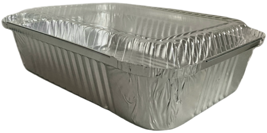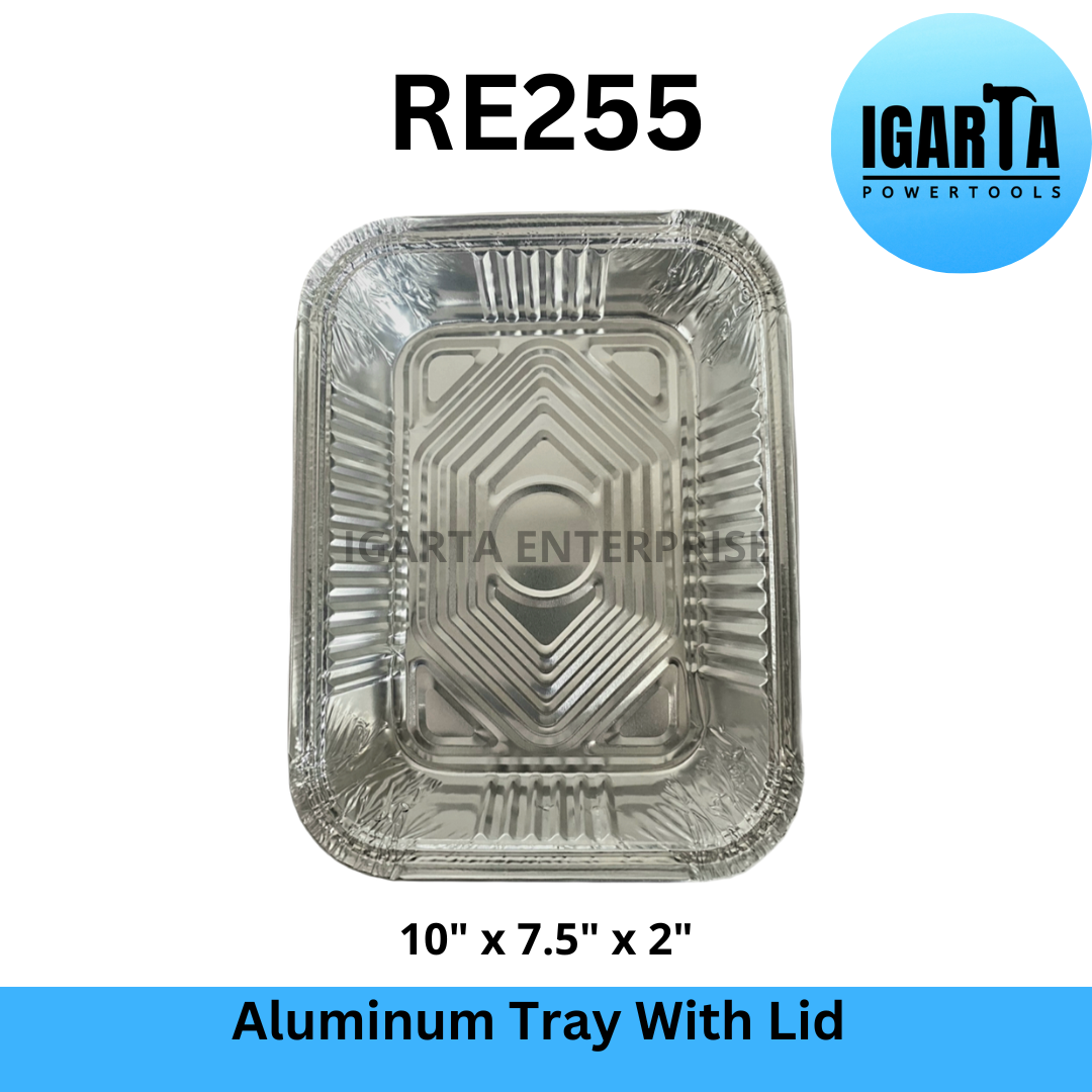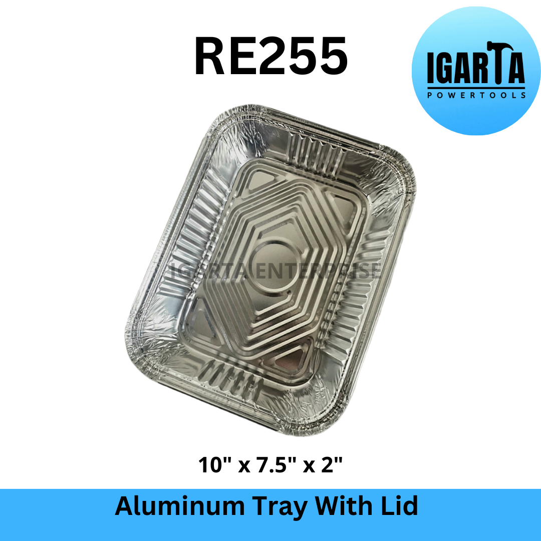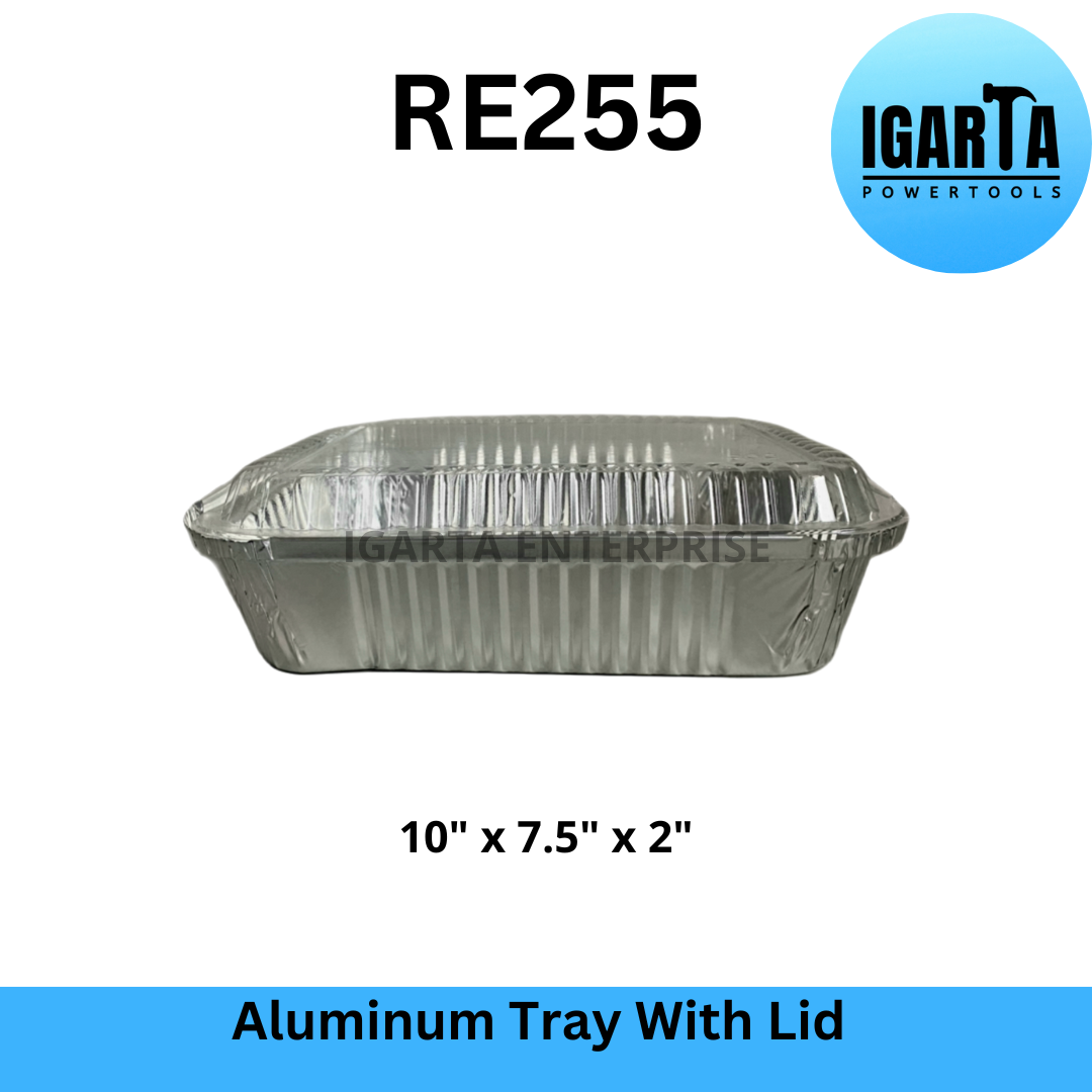 RE255 Aluminum Tray with Lid - 10x7.5x2 Inches is a food grade and oven-safe aluminum tray that can be used for baking, serving, and storing food. It has a capacity of 1750ml and comes with a clear plastic lid that seals in freshness and prevents spills. This tray is ideal for catering, takeout, or home use. It can hold hot or cold dishes and is easy to clean and recycle.